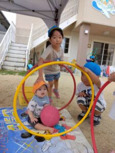 すると・・・ぞう組のお兄ちゃん・お姉ちゃんがフラフープ等でいっしょに遊んでくれました💖
