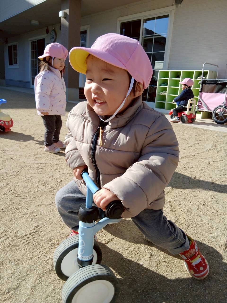 お天気がいい日は園庭でブーブー車や三輪車、新しく購入した四輪車に乗っています🚙🚲💨