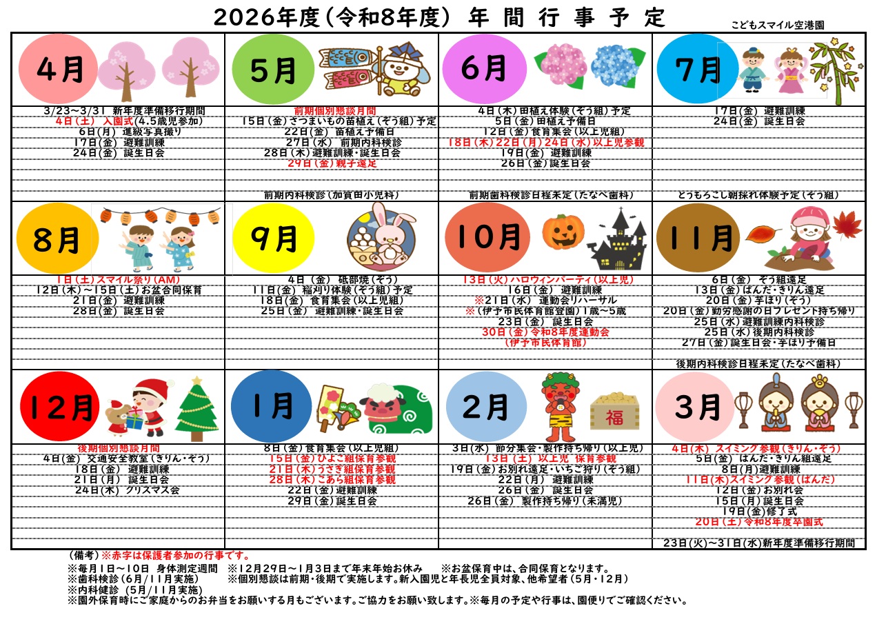 「空港園」の年間スケジュール